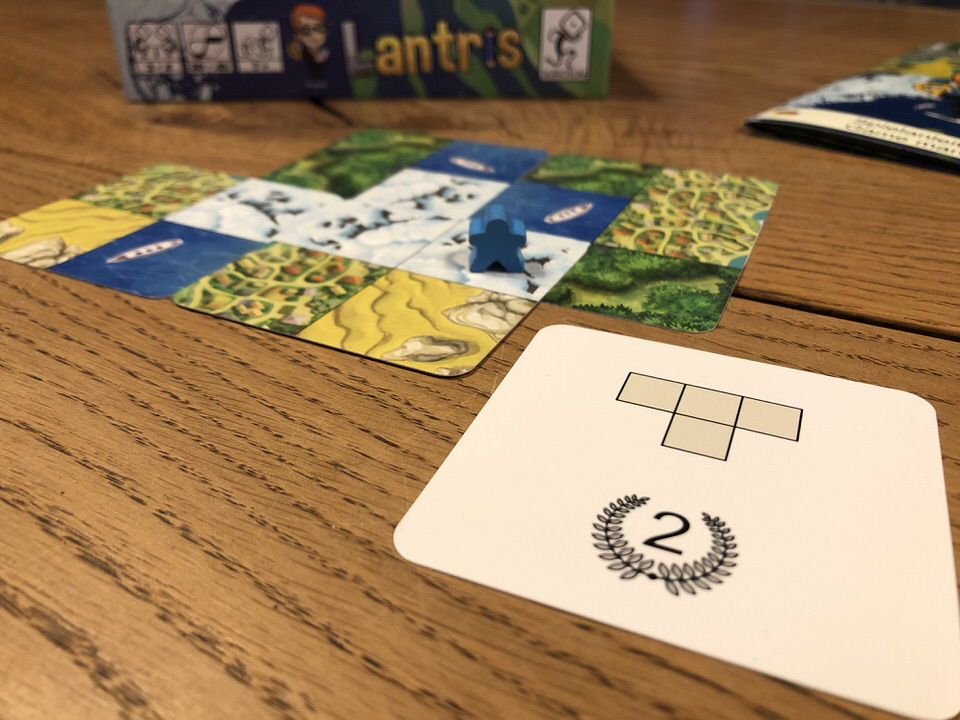 Im Dezember 2020 hat der noch recht junge Kuriosum Verlag das kleine Legespiel Lantris veröffentlicht. In dem Spiel müssen zwei bis vier Spieler ab sieben Jahren versuchen Aufträge von verschiedenem Schwierigkeitsgrad über das Auslegen von Landschaftsplättchen zu erfüllen. Der Aufbau ist schnell erledigt. Leichte und schwere Aufträge sowie alle Landschaftskarten werden getrennt gestapelt. Das Startplättchen kommt in die Mitte. Jeder Spieler bekommt drei Landschaftskarten, zwei leichte und einen schweren Auftrag, drei Architektenfiguren und eine Übersichtskarte.